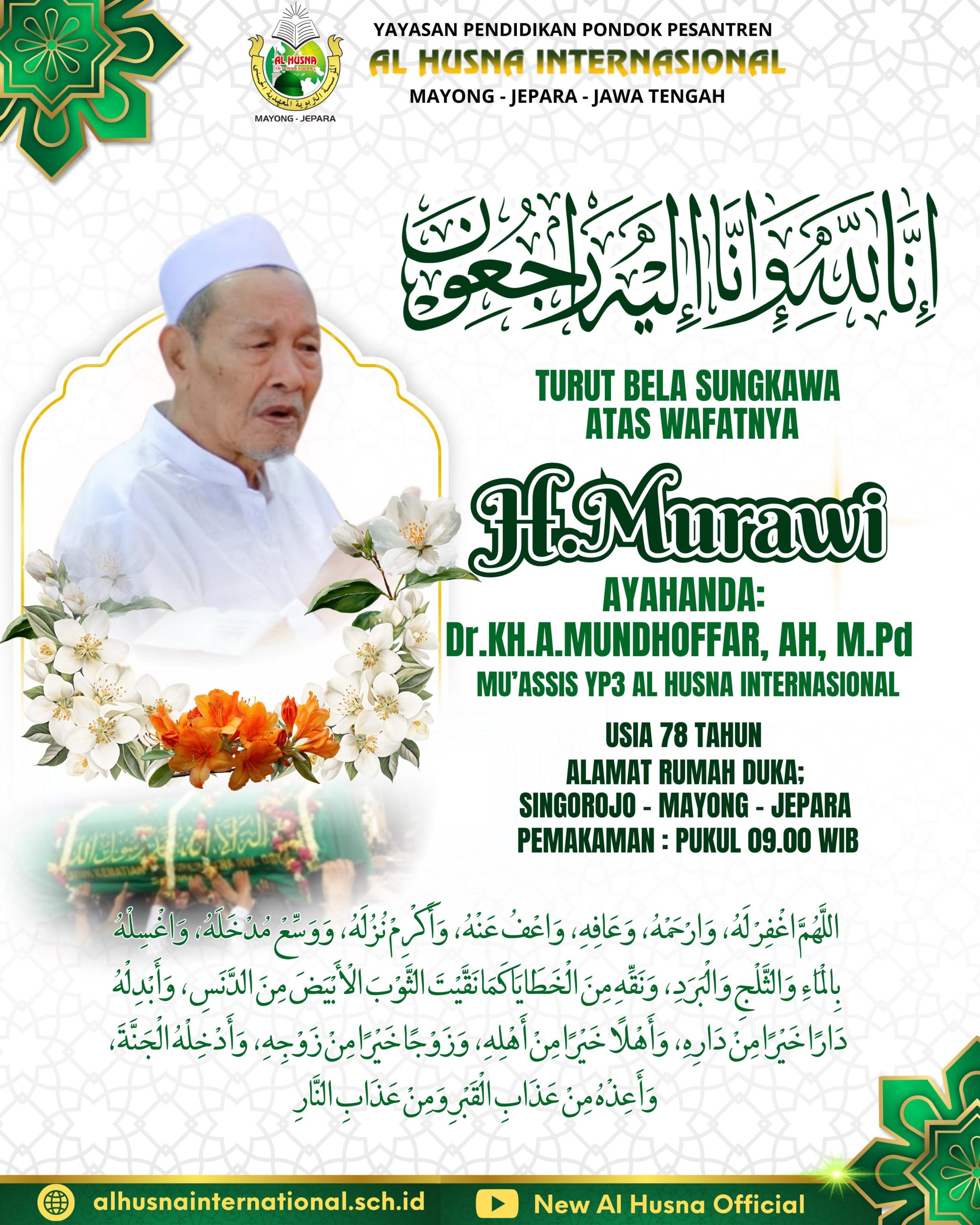 Wafatnya H. Murawi menjadi kehilangan besar bagi keluarga besar Al Husna Internasional. Sosoknya akan dikenang sebagai tokoh masyarakat yang telah mewarnai perjalanan sosial masyarakat dengan kepedulian, kebersamaan, dan peran aktif di tengah masyarakat, termasuk perjalanan dan perkembangan Al Husna Internasional.