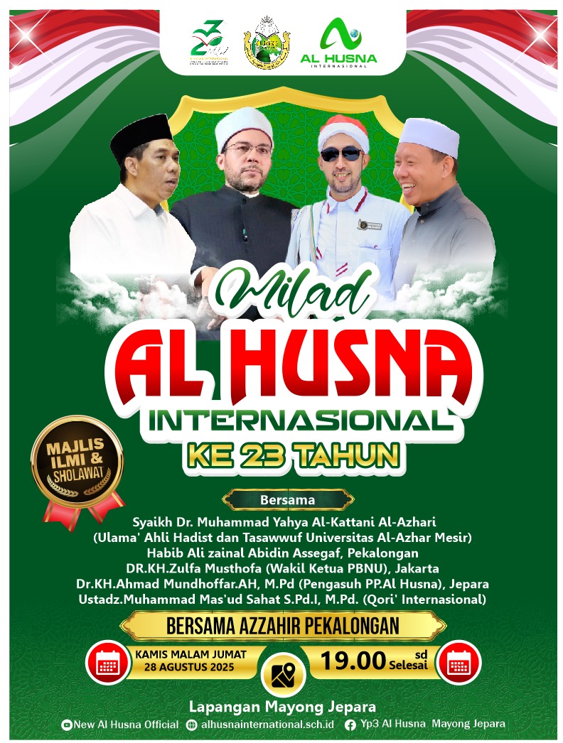 Allohummarhamna bil Qur’an Dalam rangka menyambut Milad Al Husna Internasional Mayong Jepara yang ke-23 dengan bertajuk “Membumikan Al Qur’an dengan Mewujudkan Kehidupan yang Harmoni dan Berketuhanan”, pondok pesantren Al...