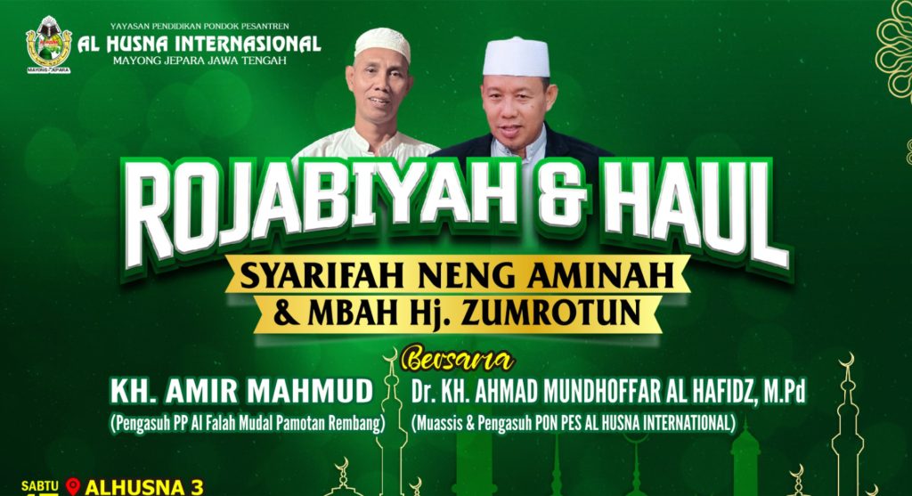 Hari Sabtu, 17 Januari 2026, kemarin menjadi hari yang spesial bagi seluruh santri Al Husna Internasional. Pada hari itu, telah diadakan acara Rojabiyah dan Haul Ning Syarifah Aminah dan Mbah Hj. Zumrotun Bersama KH. Amir Mahmud pengasuh PP Al Falah Mudal Pamotan Rembang, yang akan dimeriahkan dengan berbagai kegiatan lainnya yang menarik dan penuh makna.