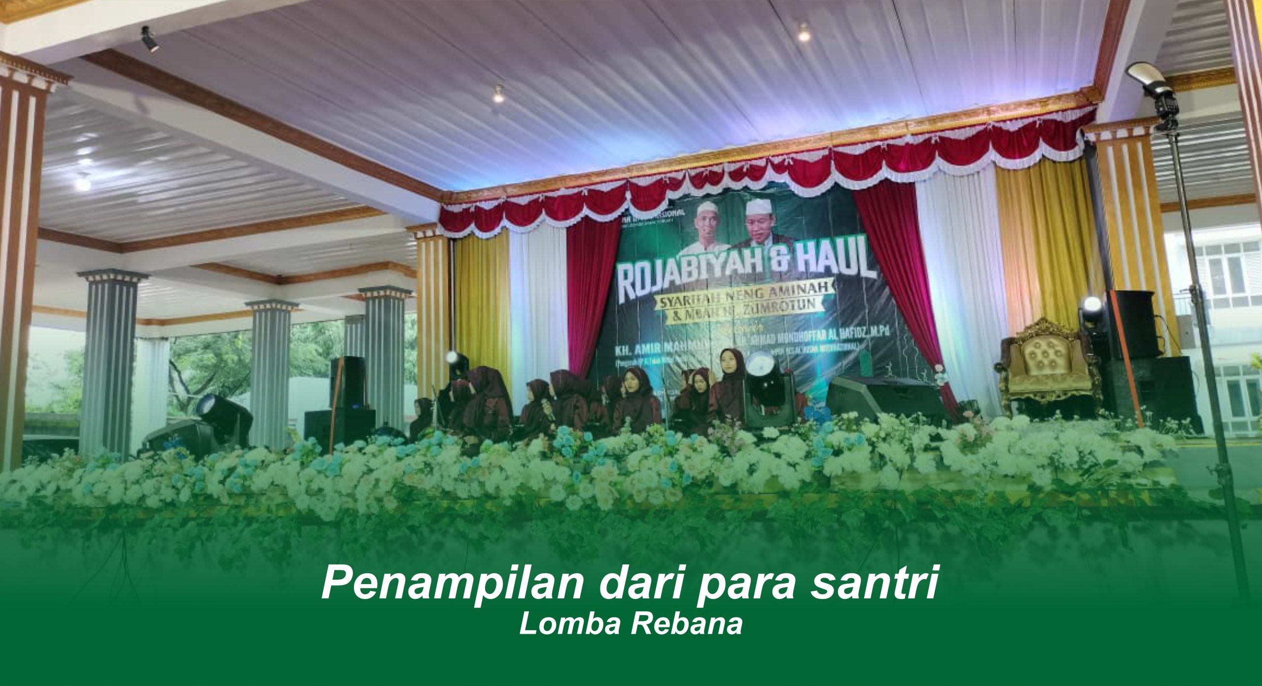 Gemuruh dan sorak-sorak santri tak henti menyemangati para kontestan lomba rebana.