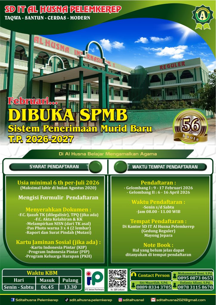 SPMB SD IT Al Husna Pelemkerep (Reguler) T.P. 2026-2027